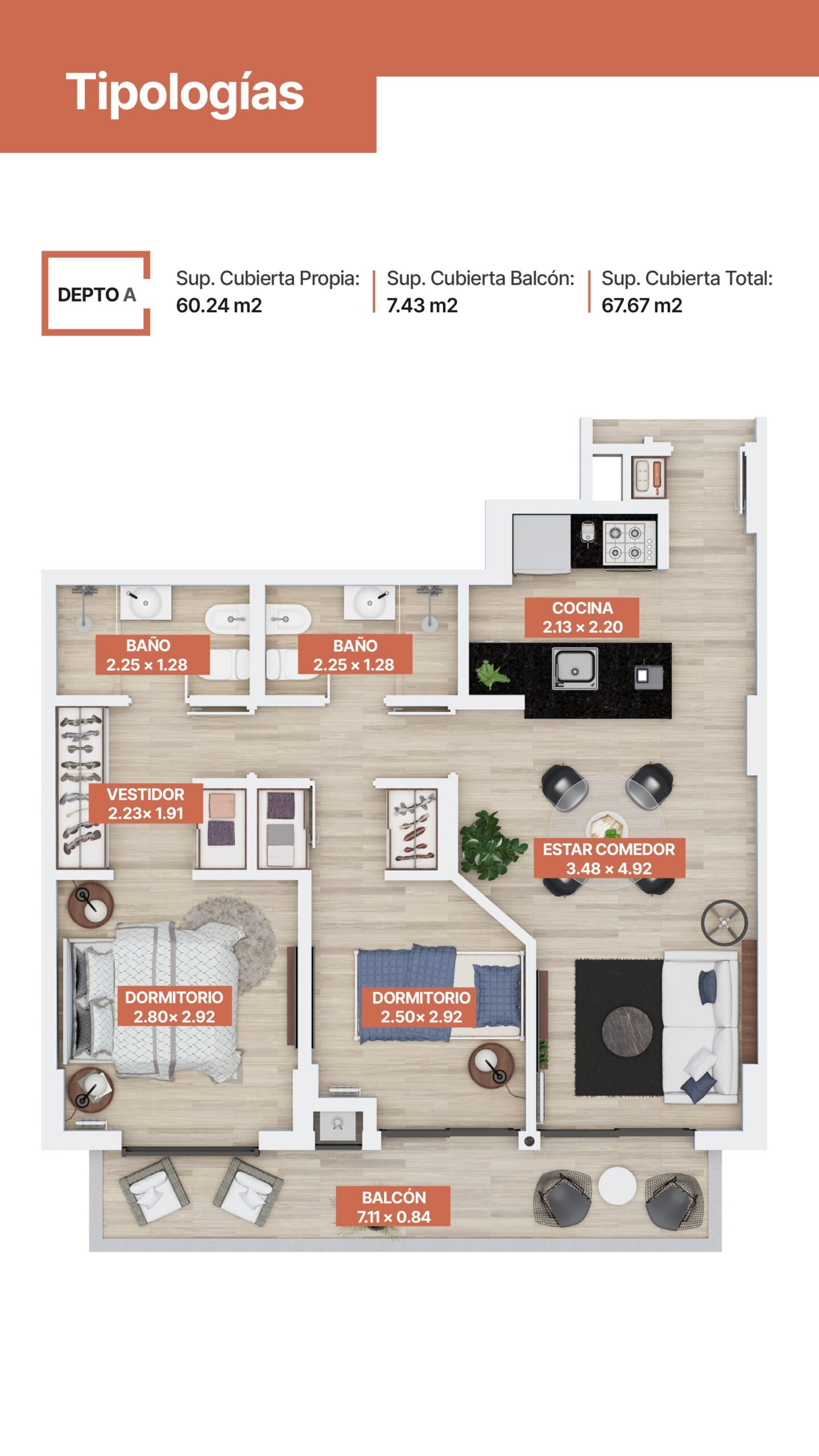 Tipologías funcionales, con amplios balcones y terminaciones de primera calidad.