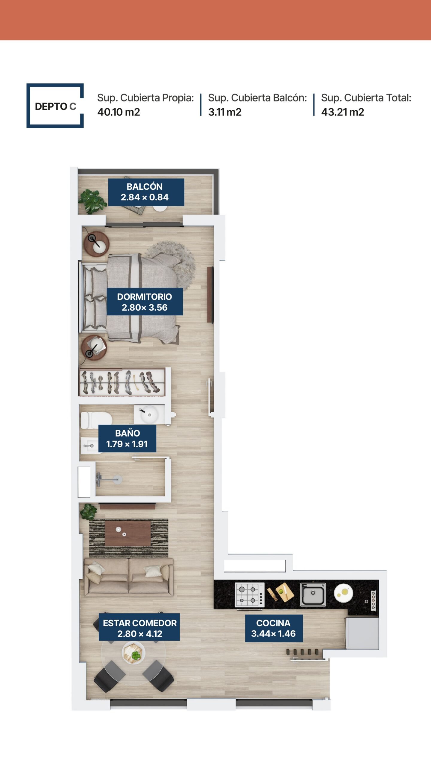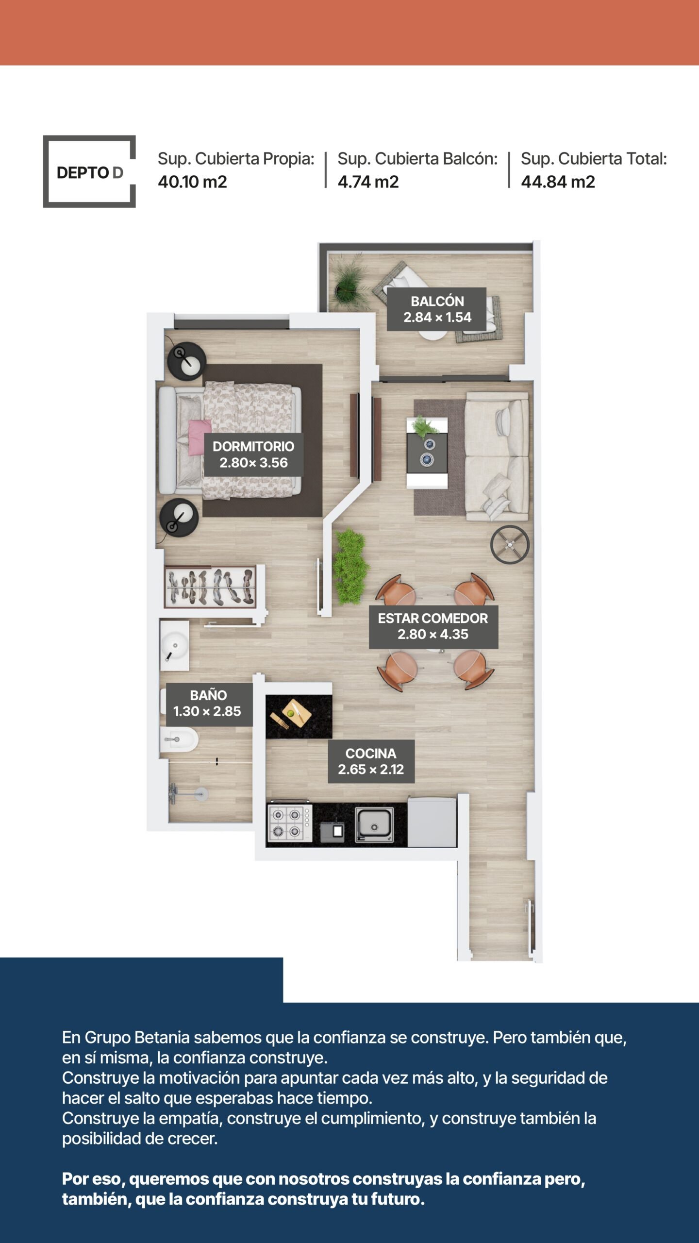 31 departamentos de 1 y 2 dormitorios.